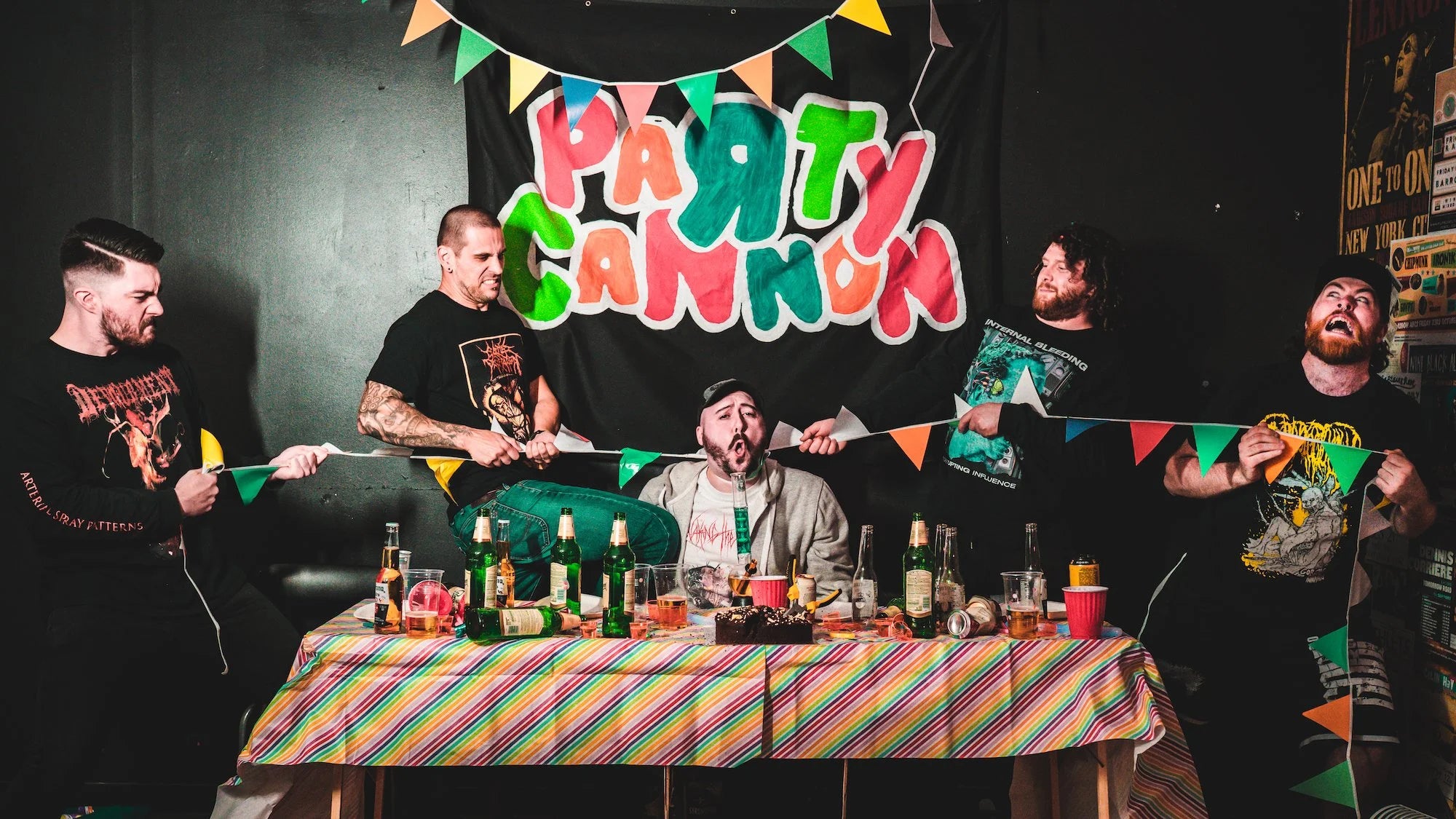 With his trademark mix of Scottish wit and technical ferocity, Mike delivers the sonic backbone of Party Cannon’s chaotic, high-energy sound. Blending crushing precision with a sense of fun, his tone—“chunk, grit, fury”—is unmistakable.